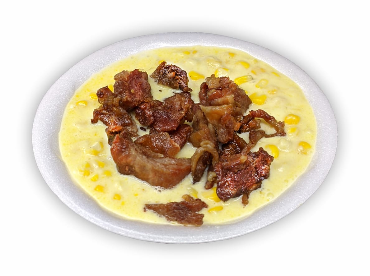 MAICITOS DULCES, SALSA DE QUESOS, TOCINETA