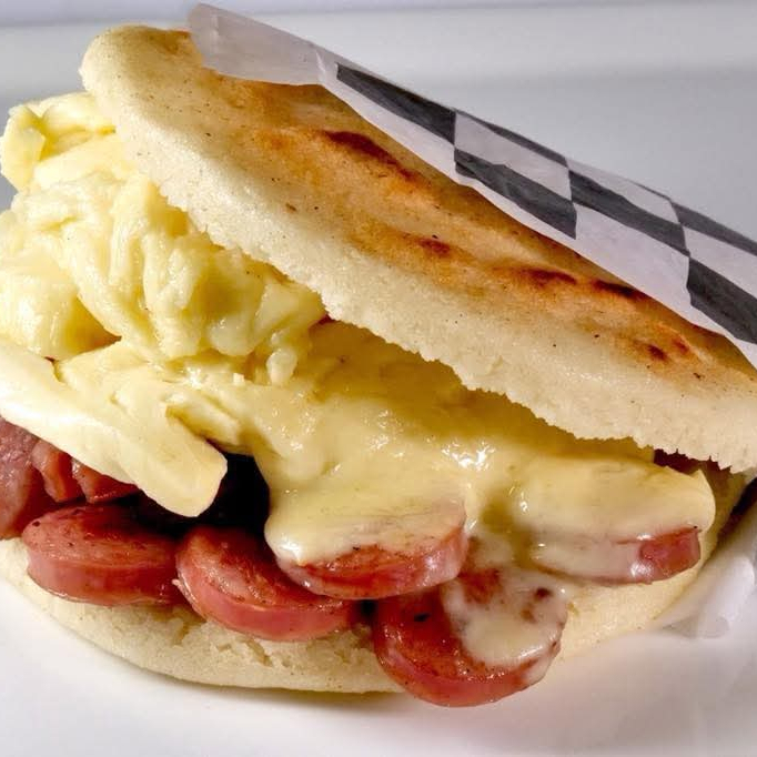 Arepa la Ninfómana ( chorizo, Maduro y Queso)