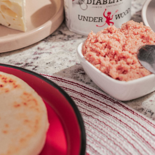 Rica arepa rellena con mantequilla, 115 gr de Diablitos Underwood y Queso Mozzarella