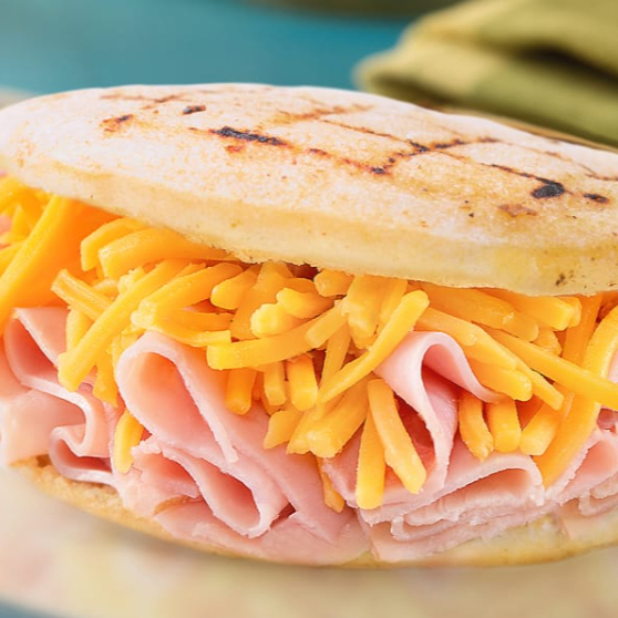 arepa rellena con jamón endiablado (diablito) mantequilla y queso amarillo