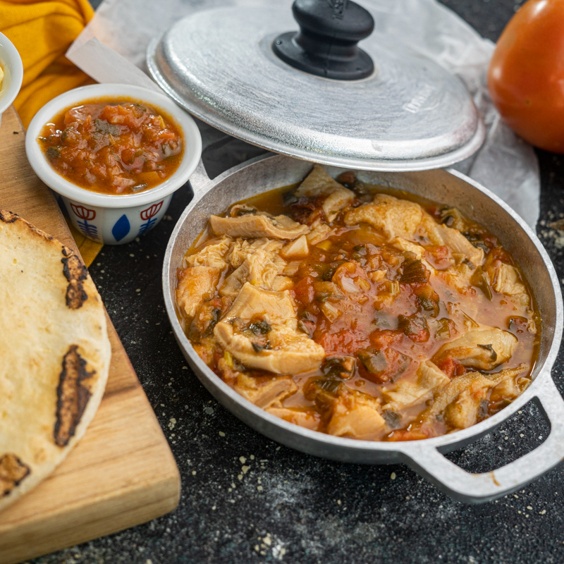Suave callo de res cocido, servido en una rica salsa hogao que realza su sabor, viene acompañado de arepa tela, mantequilla y limon.