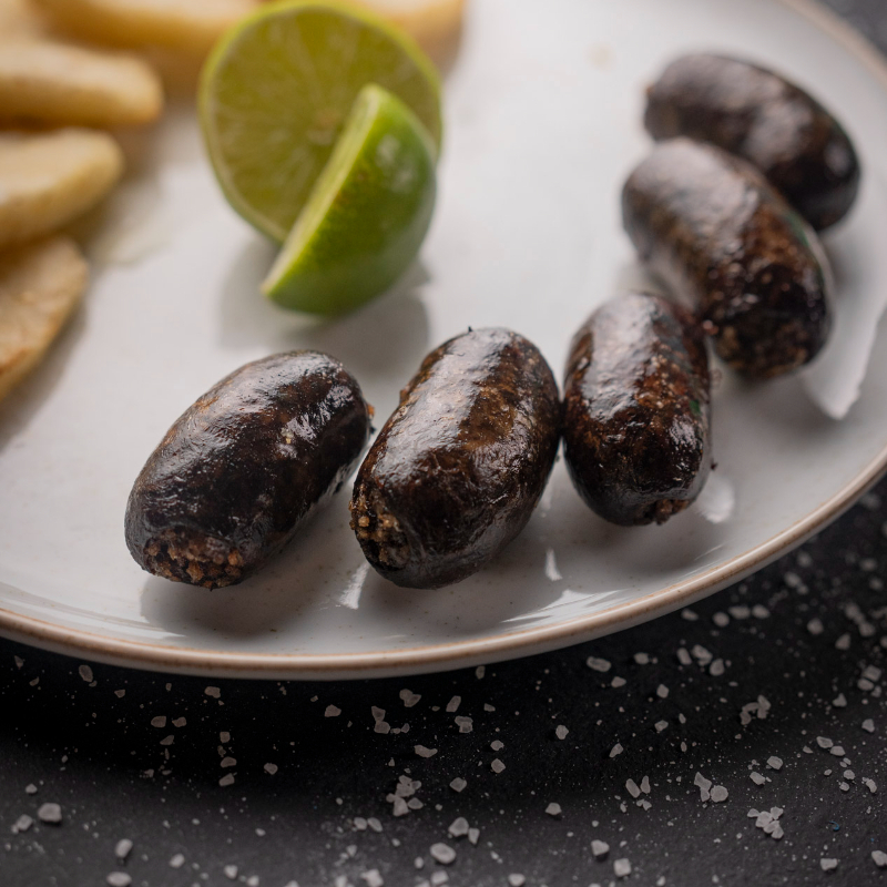 3 morcillitas antioqueñas acompañadas de 3 arepitas y limón.