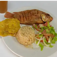 Orden de500 grs de tilapia frita, acompañado de arroz con coco, patacón y ensalada del día.