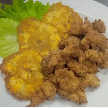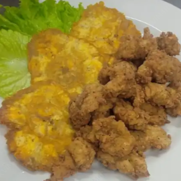 Patacon con camarones apanados