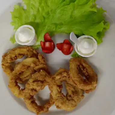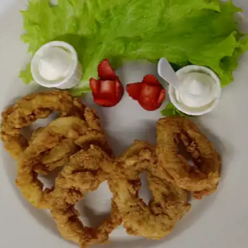 Orden de cinco (5) piezas de anillos de calamar apanados con salsa tartara o suero costeño