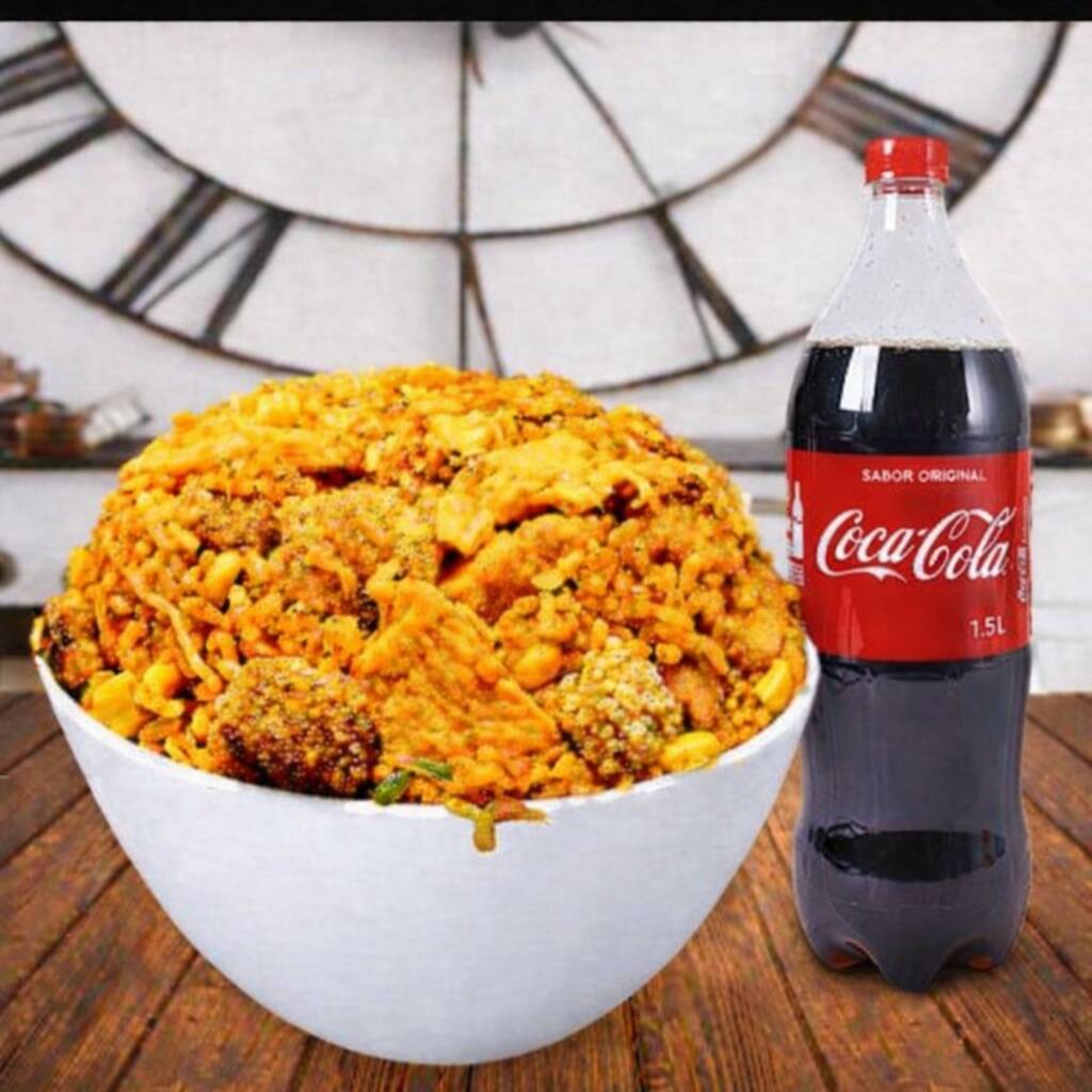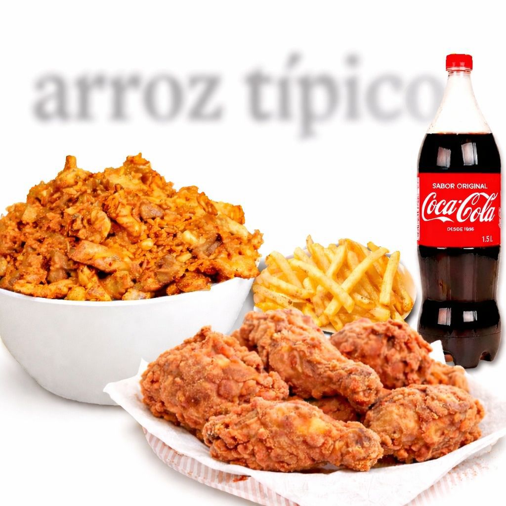 Exquisito arroz paisa contiene; pollo, pernil de cerdo, chicharron, maizitos, platano maduro, para 3 personas mas Coca-Cola 1L