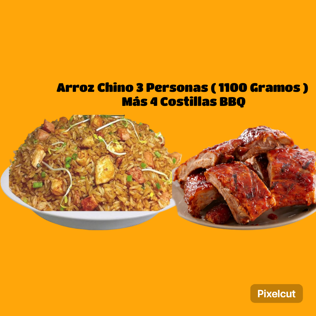 Arroz Pollo Cerdo Raíces China Jamón Para 3 Personas ( 1100 Gramos ) Más 5 Costillas BBQ