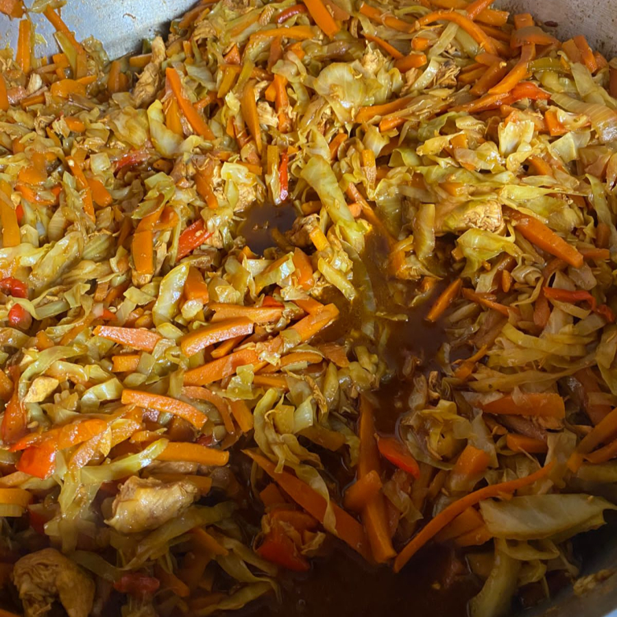 Ingredientes Pollo Pimentón zanahoria y repollo (porcion para max 2 personas 500gr)