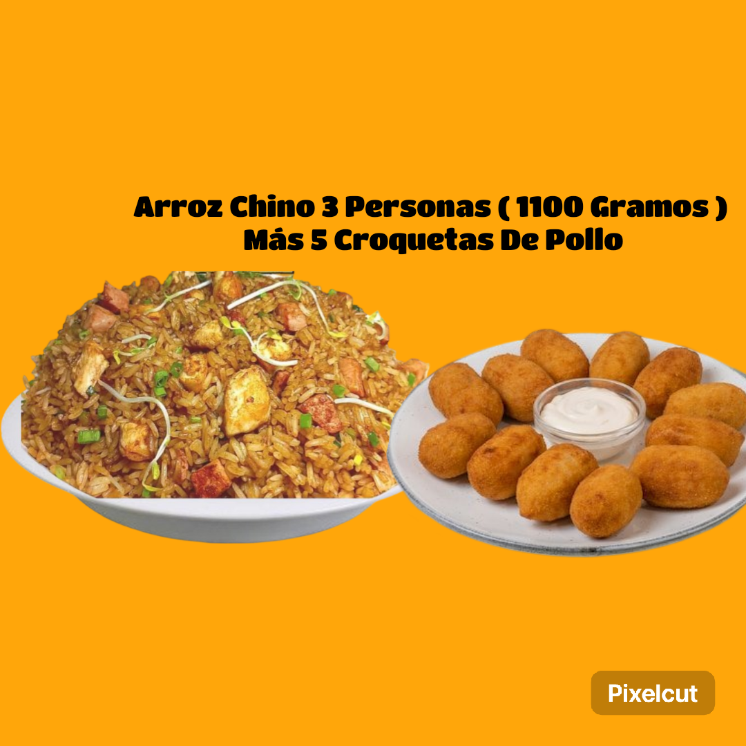 Arroz Pollo Cerdo Raíces China Jamón Para 3 Personas ( 1100 Gramos ) Más 5 Croquetas De Pollo