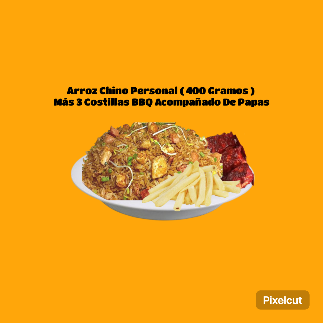 Arroz Chino Acompañado De 3 Costilla BBQ + Papas