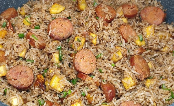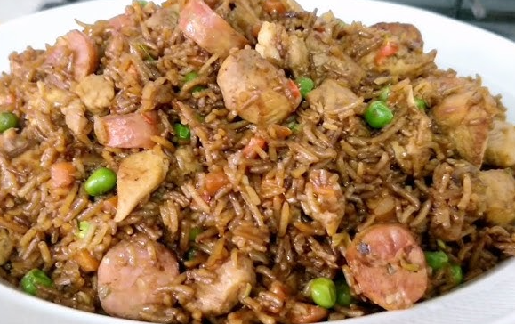 Arroz chino,cerdo,pollo,res, raíz china, cebollín,jamón