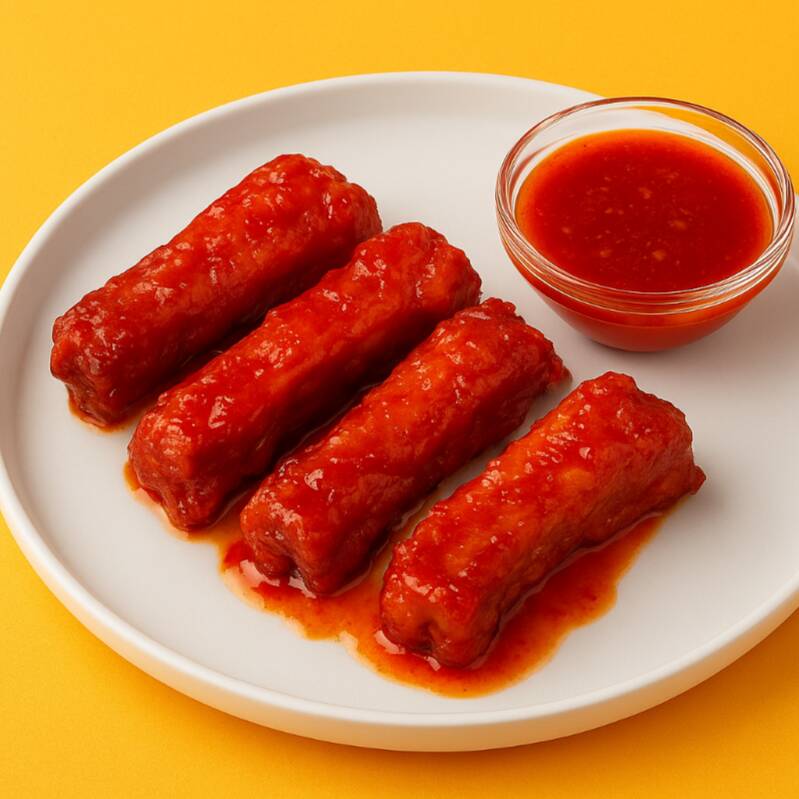 Cerdo,pollo, cebollín, salchicha, raíz china +salsa agridulce