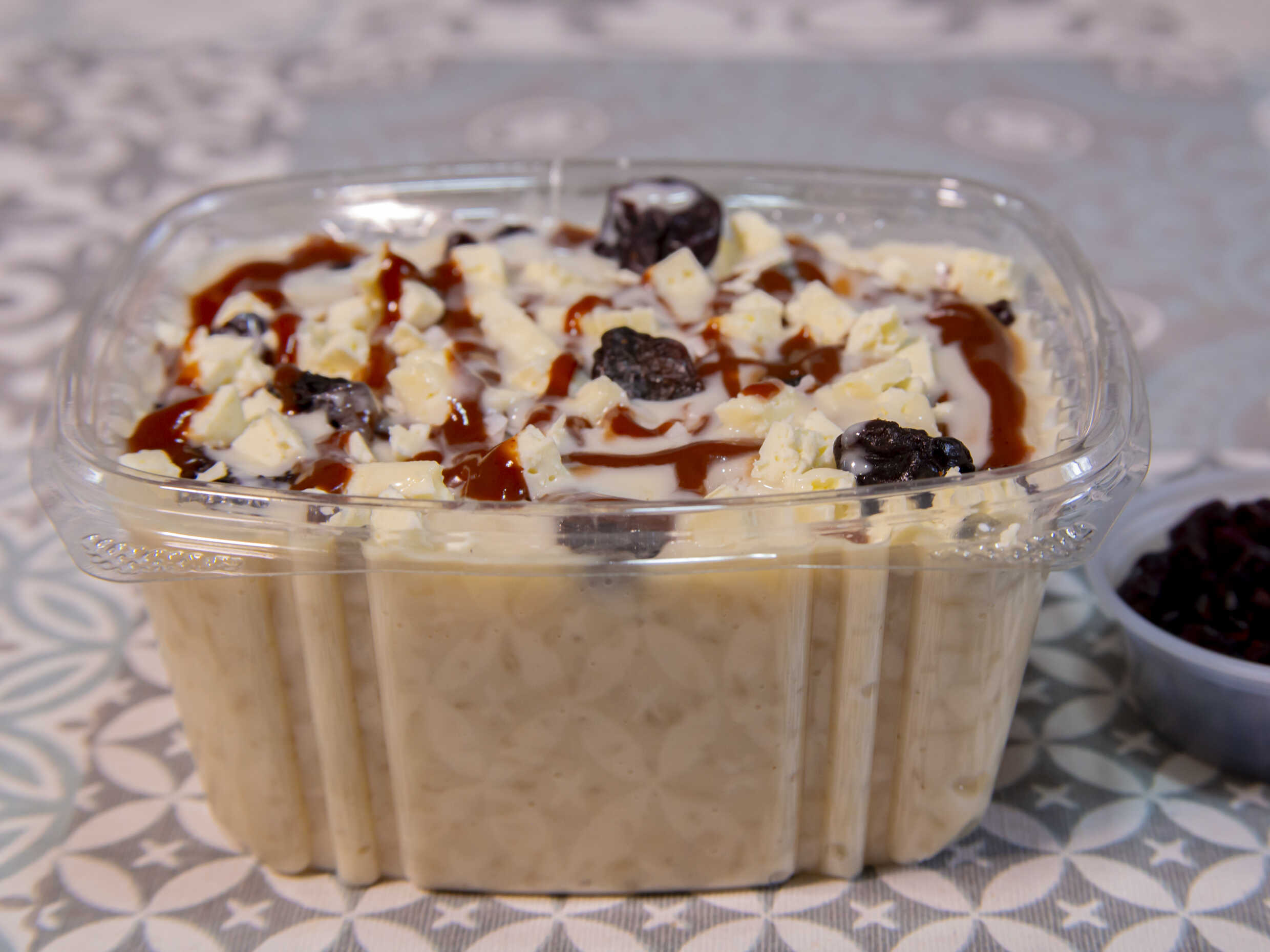 Hecho con arroz blanco, y canela, escoge adiciones con costo.