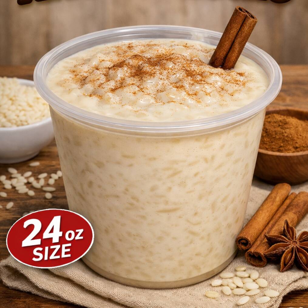 Hecho con arroz blanco, queso y canela. Toppings a elección