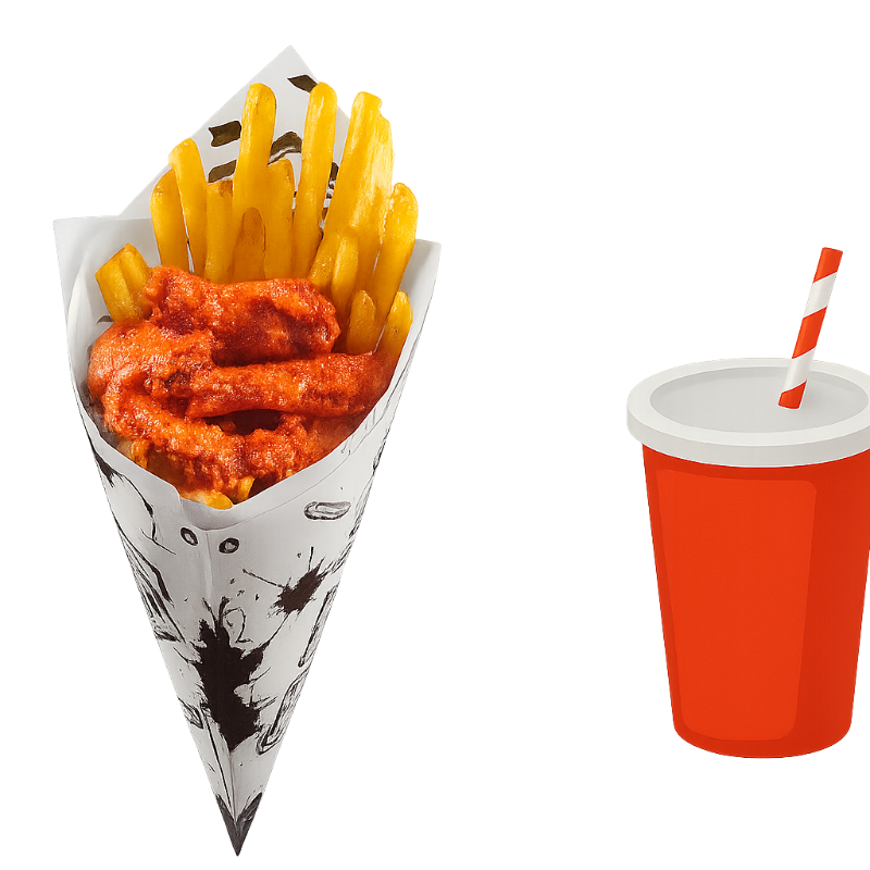 alitas bbq, papas a la francesa, chorizo + gaseosa personal