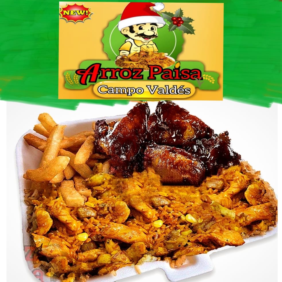 Exquisito arroz paisa contiene; pollo, pernil de cerdo, chicharron, maizitos, platano maduro. Papas a la Francesa 200grs + Alitas (Combo) + Exquisito arroz paisa contiene; pollo, pernil de cerdo, chicharron, maizitos, platano maduro.