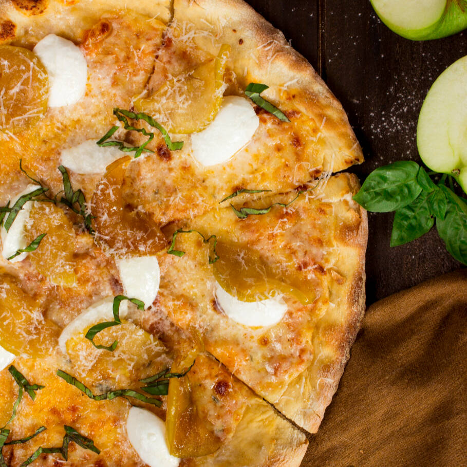 PIZZA 4 QUESOS Y MANZANA CARAMELIZADA