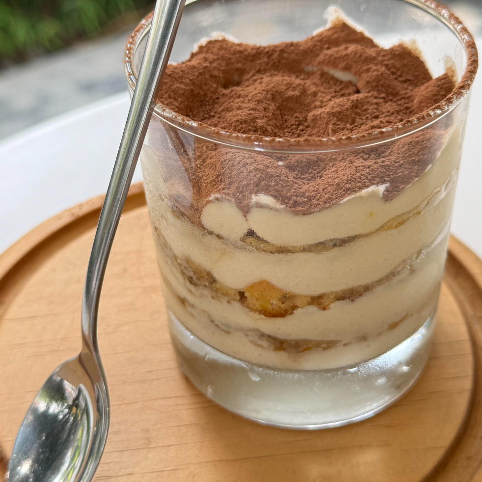 Clásico postre italiano, elaborado con capas de bizcocho, impregnado en café de origen, crema suave de mascarpone, amaretto y un toque de cacao en polvo.
