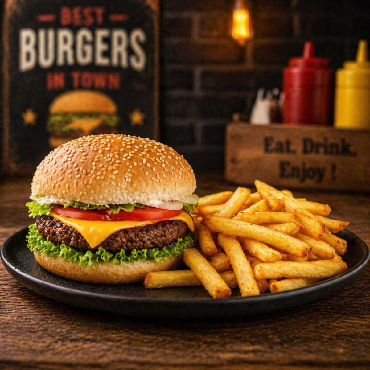 Hamburguesa Especial*1 + Papas a la Francesa*1 + Elige tu bebida Favorita 400 ml*1