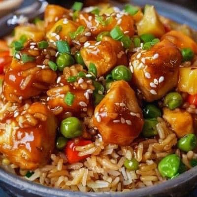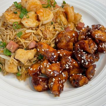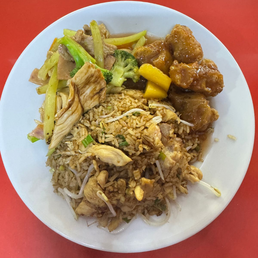 Arroz Chino con Chop Suey y Agridulce de Pollo
