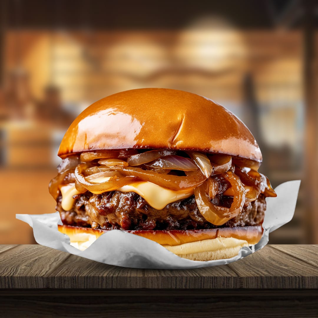 Hamburguesa Caramelized Bliss (Incluye Papas) 🔥