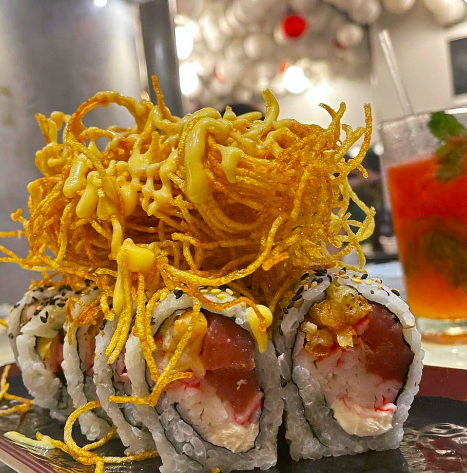 10: bocados de california,10: bocados de dinamita , 4 croquetas.mas bebeida grati