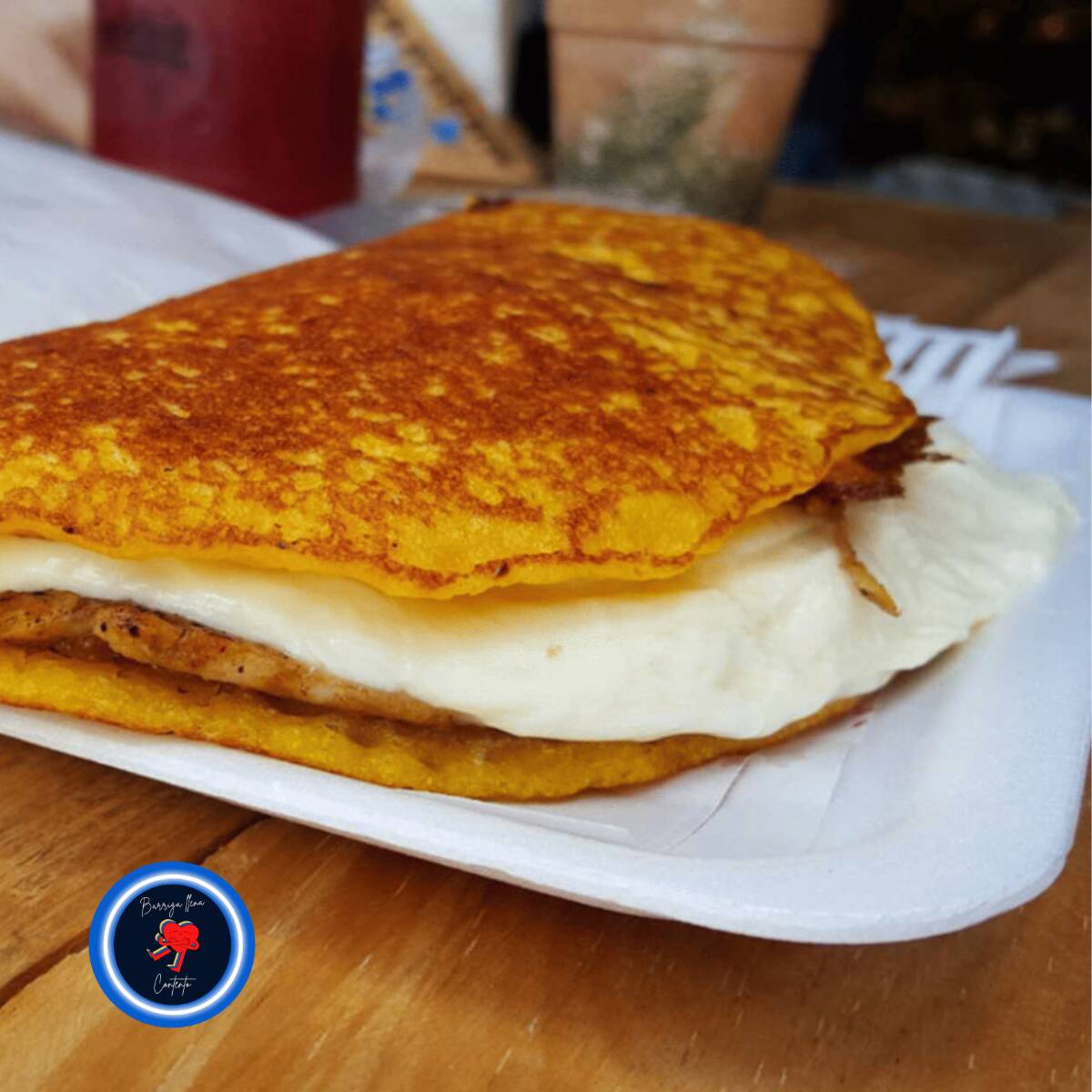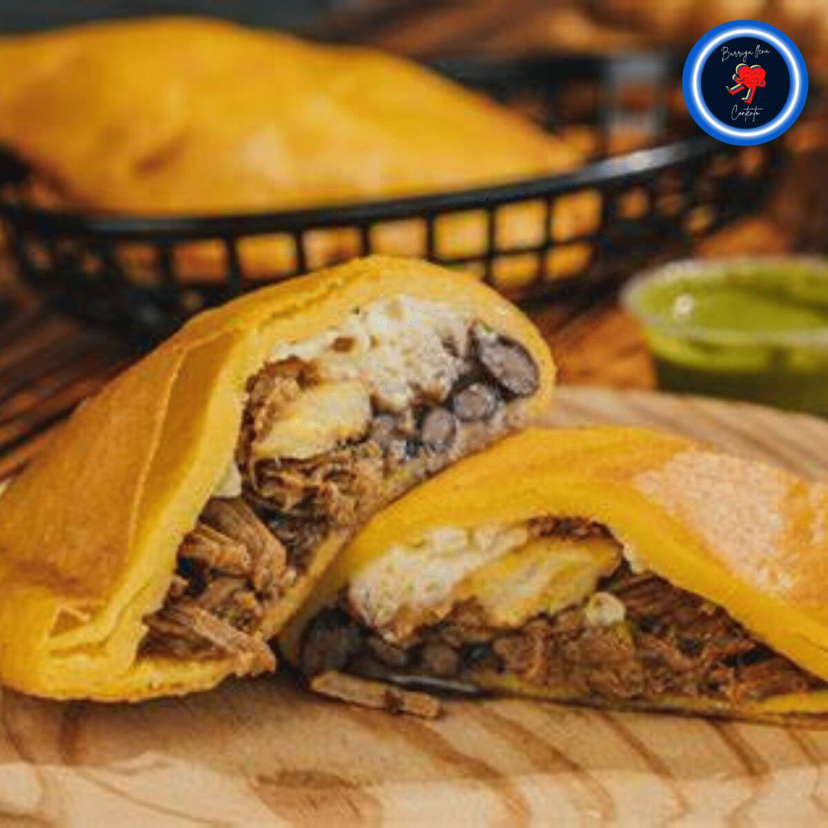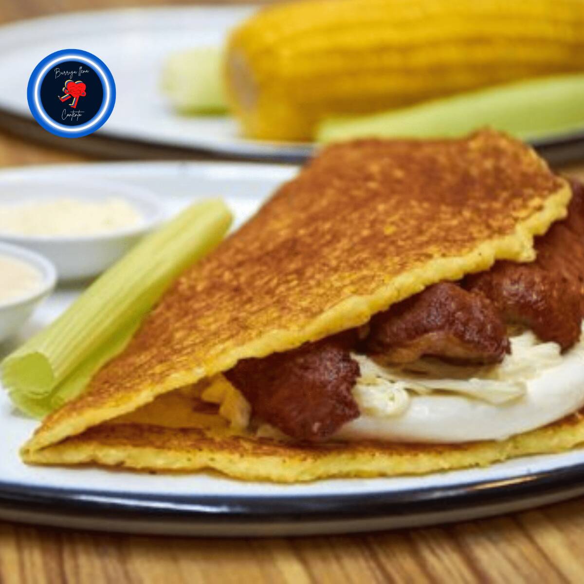 🐖 *Cachapa Venezolana con Cochino Frito y Queso de Mano* Tradicional cachapa venezolana de maíz dulce, rellena con crujiente cochino frito y queso de mano fresco. Una combinación deliciosa entre lo dulce, salado y crujiente.