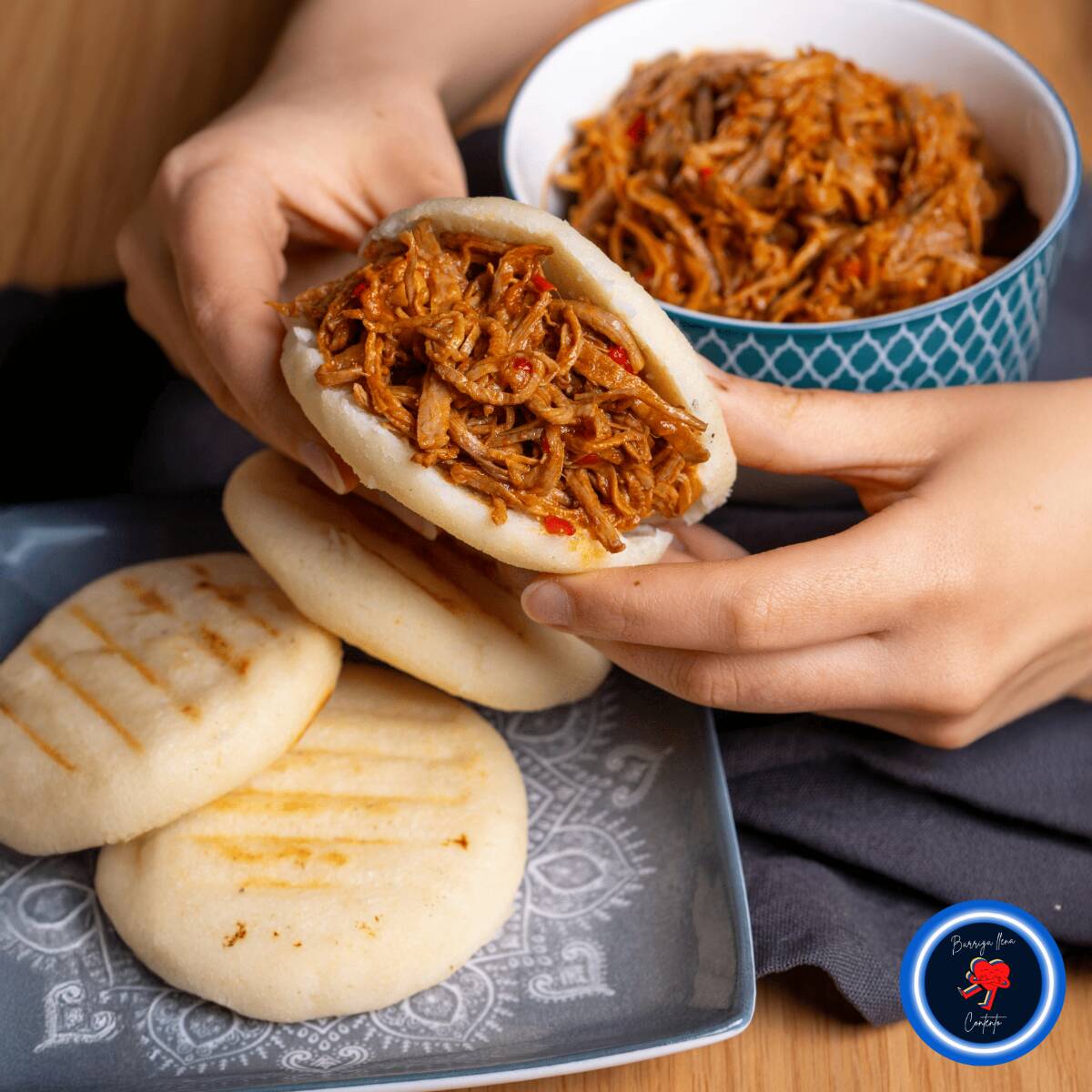 🥩 *Arepa Venezolana de Carne Mechada* Arepa de maíz dorada y suave, rellena con jugosa carne mechada sazonada al estilo venezolano. Un clásico lleno de sabor y tradición.