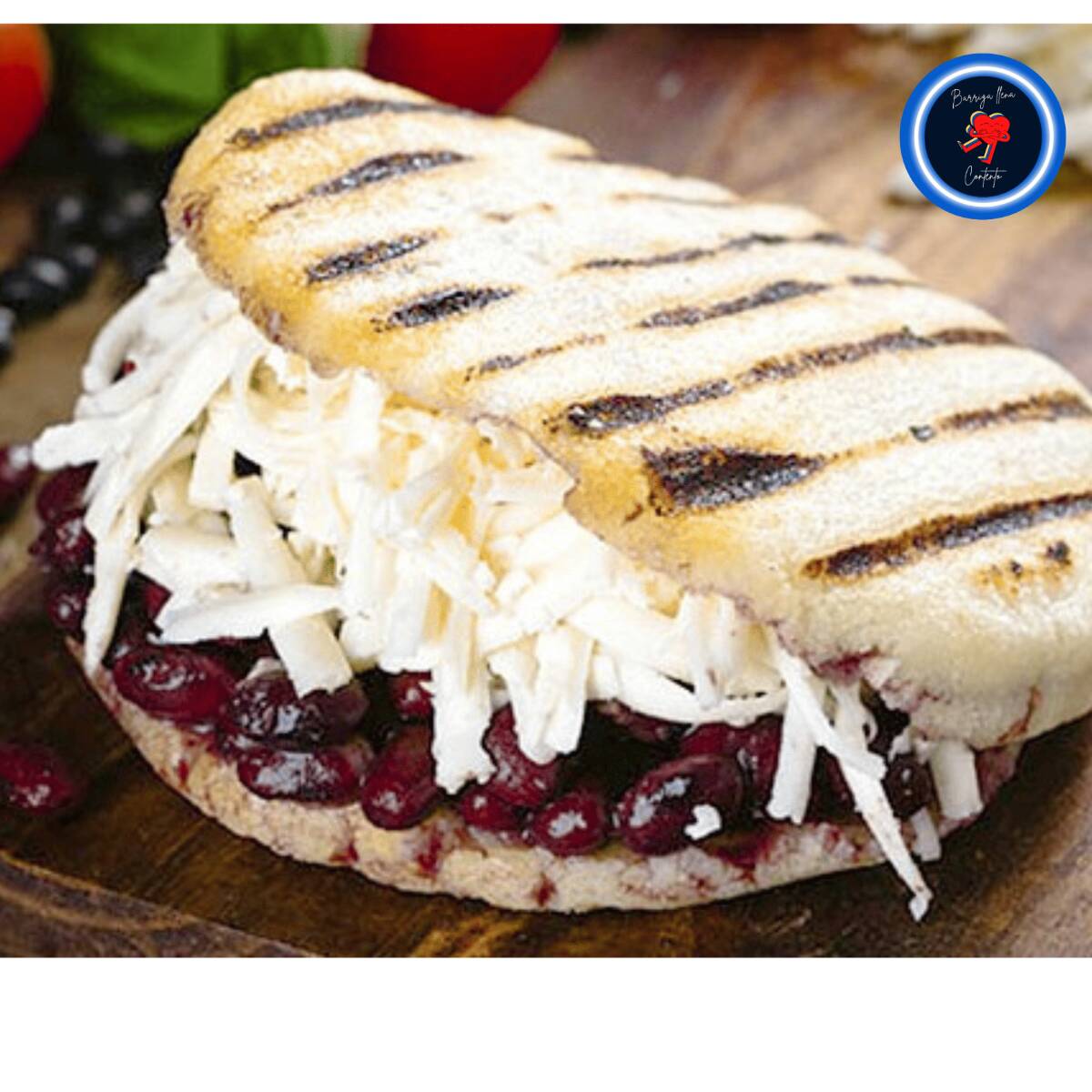 🫘 *Arepa Venezolana Dominó* Arepa venezolana de maíz recién hecha, rellena con caraotas negras y abundante queso blanco rallado. Una combinación clásica de sabor intenso y textura cremosa.