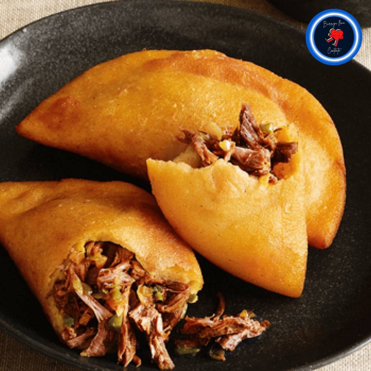🥩 *Empanada Venezolana de Carne Mechada* Crujiente empanada de masa de maíz rellena con jugosa carne mechada sazonada al estilo venezolano. Dorada al momento para ofrecer un sabor casero irresistible.