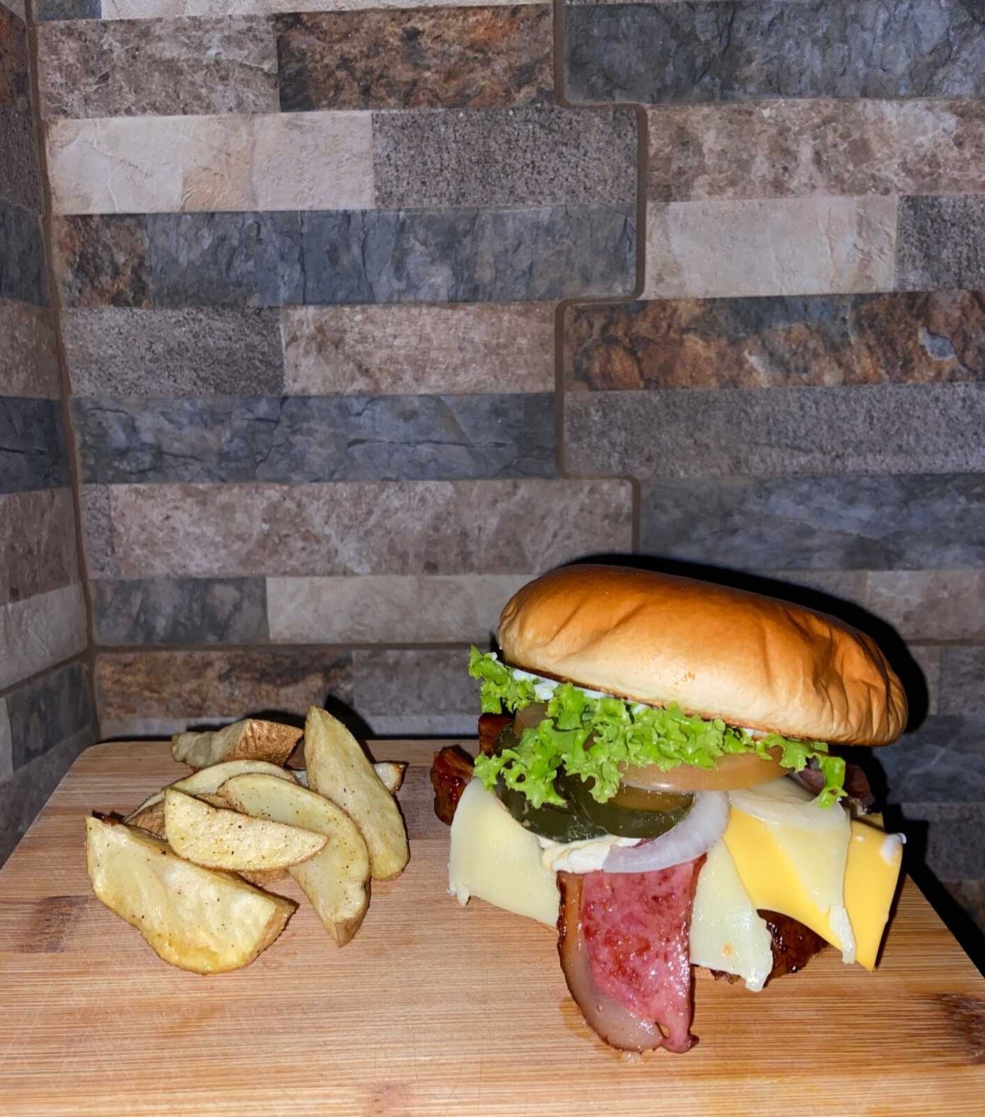 Pan+queso+queso mozarella+queso holands+queso crema+lechuga+tomate+pepinillos+ cebolla+tocineta+chorizo+bondiola