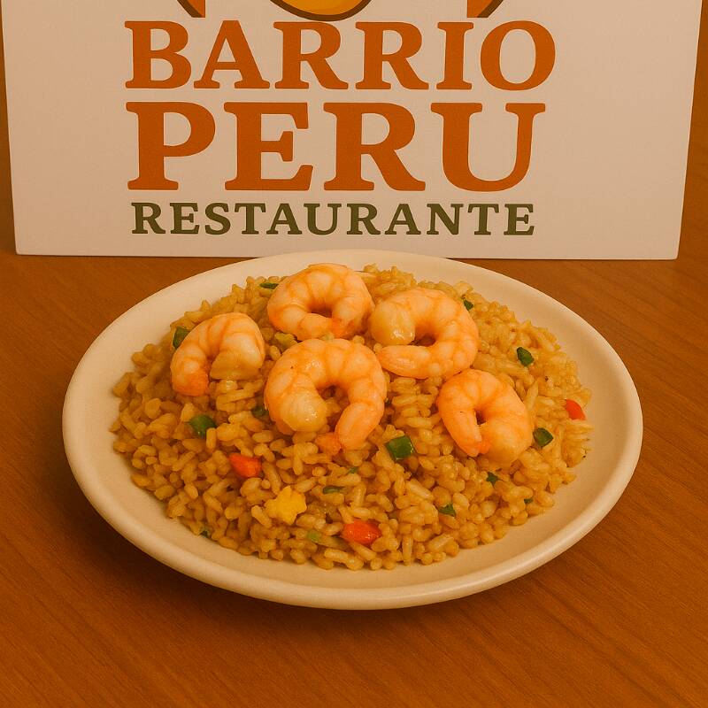Un chaufa marino con langostinos frescos que aportan dulzura y fuerza.