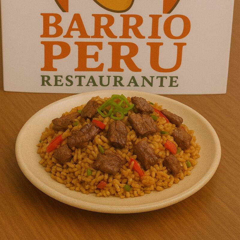 Jugosos trozos de res en un chaufa intenso, con aromas que enamoran.