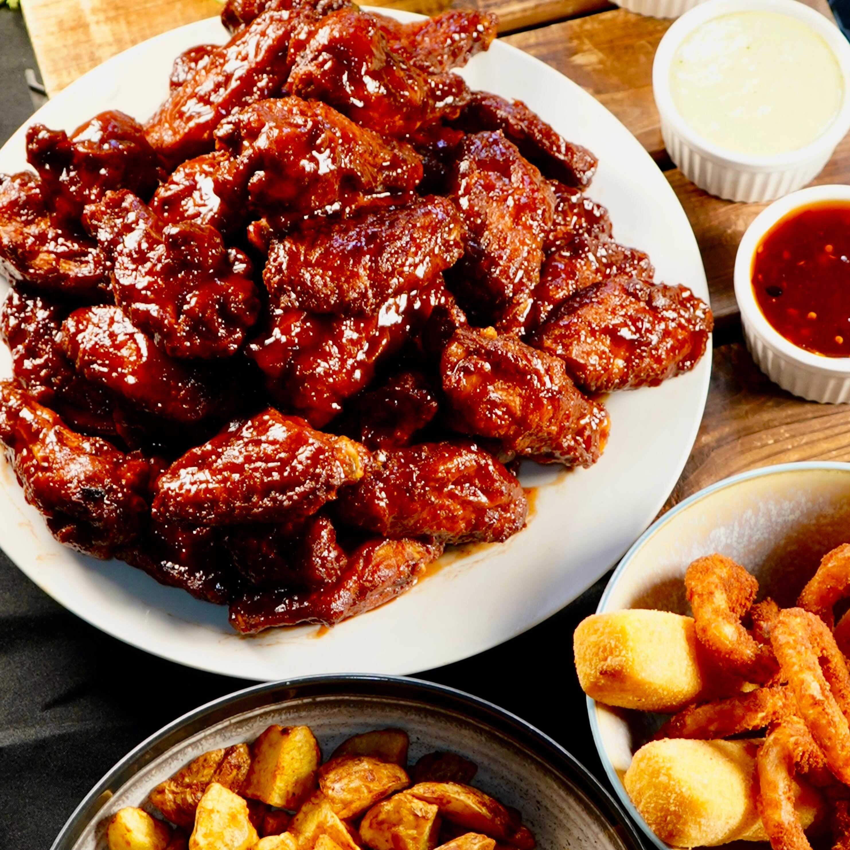 12 Unidades de alas acompañadas de aprox. 300g de papas rústicas.( copión )