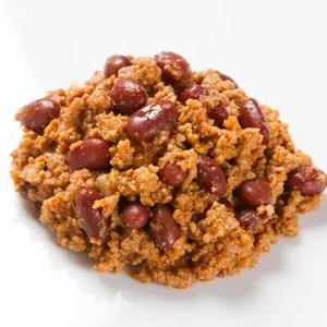 Una mezcla de papas a la francesa, chili con carne (contiene fríjol), queso mozzarella y otros ingredientes.