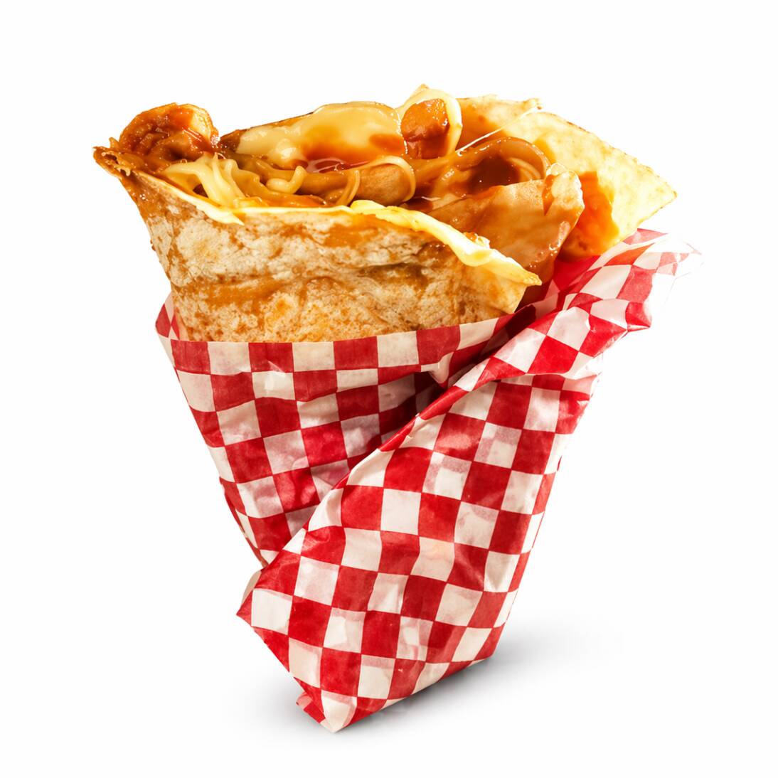 Tortilla de 30 cm, rellena con 3 proteínas a tu elección (chili, pollo o cerdo) y todos los ingredientes de nuestra barra a tu gusto.