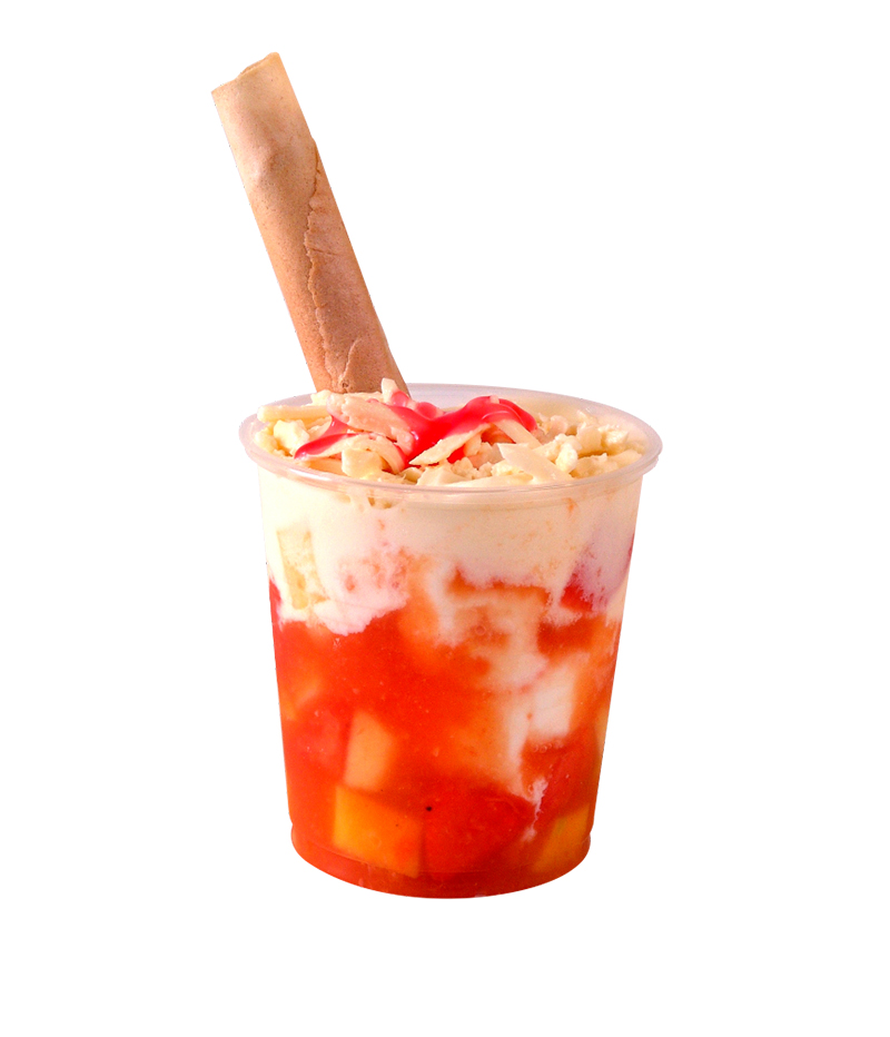 Mango, fresa, banano, papaya, manzana, kiwi, queso, crema chantilly, yogurt, salsas, 1 bola de helado de su elección.