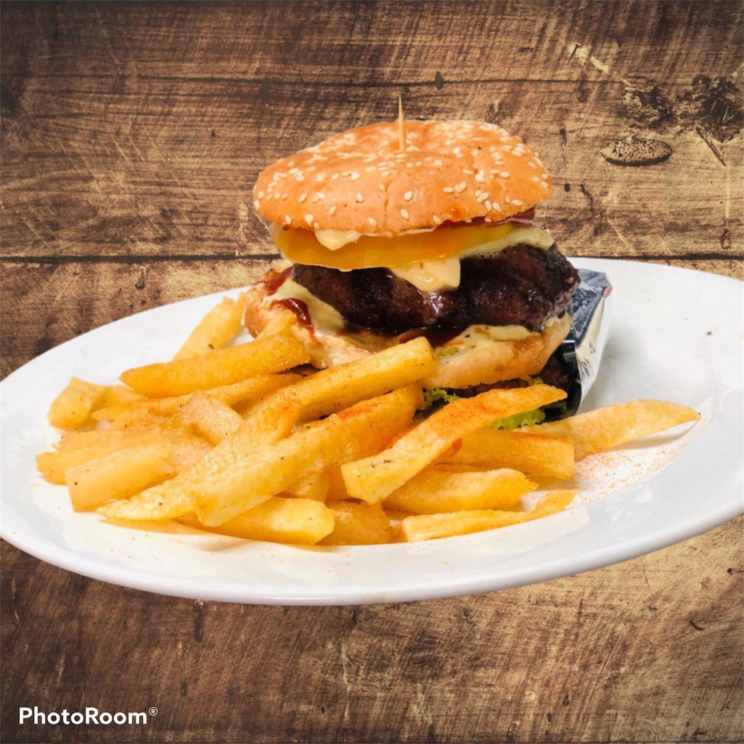 Res, pollo y/o tocineta papa a la francesa, lechuga, tomate, cebolla.