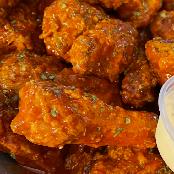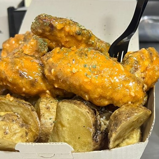 Alas son Horneadas y Fritas a Perfección (Nuestra Papas son Horneadas con cascara y fritas-son doradas) Incluye 1 Gaseosa y 1 salsa de AJO (Hecha en casa)