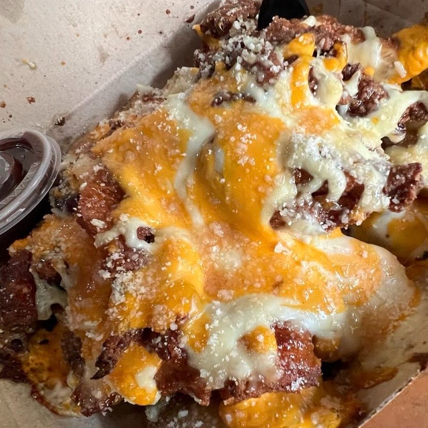 Nuestras papas con PolloCrispy, Quesos cheddar, mozzarella y parmesano- 2 pisos de miel/syrup y servida con 1 salsa BBQ (hecha en casa)PorkBelly "2Veces" es nuestro Barriguero apanado en panela y horneado a fuego lento- después frito a perfección y bañado en ajo/miel."Papas Big Boy" (Horneadas con cascara, medallones gruesas y fritas (SON DORADAS)