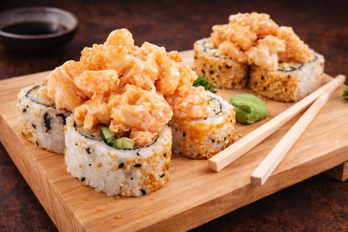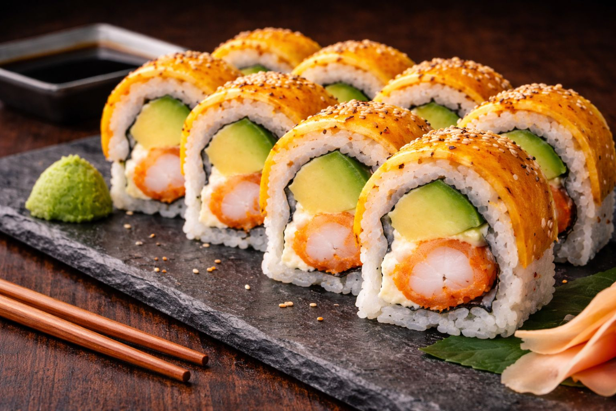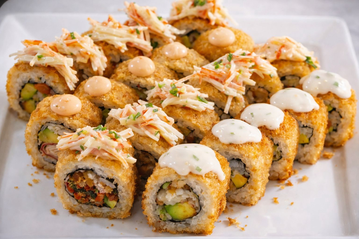 Deliciosos Rolls rellenos de Pescado Blanco , aguacate y queso crema