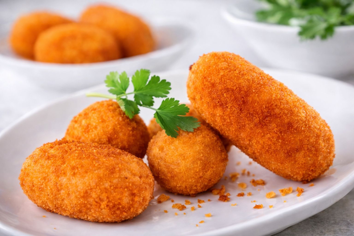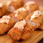 4 uds Deliciosas croquetas apanadas, rellenas de cangrejo y queso crema, acompañadas con salsa de la casa.