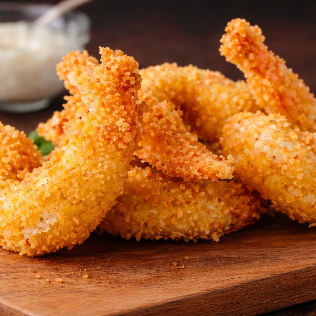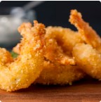 10 uds De camarones apanados, puesto en una cama de arroz, bañado en salsa nikkei.