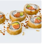 Tradicional rollo de 10 bocados, relleno de queso crema, salmón fresco y aguacate (todo apanado).