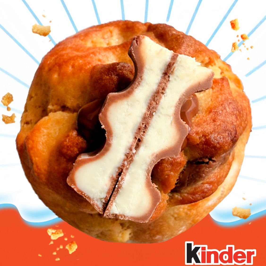 Deliciosa galleta, suave y rellena de kinderella, coronada con trozos de chocolate kinder.