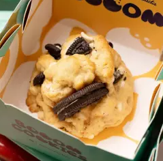 Galleta con trozos de oreos y chocolate blanco, cremosa y crujiente por fuera, suave por dentro.