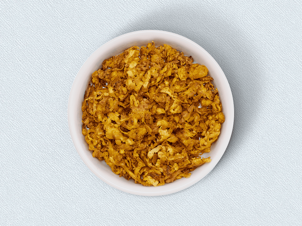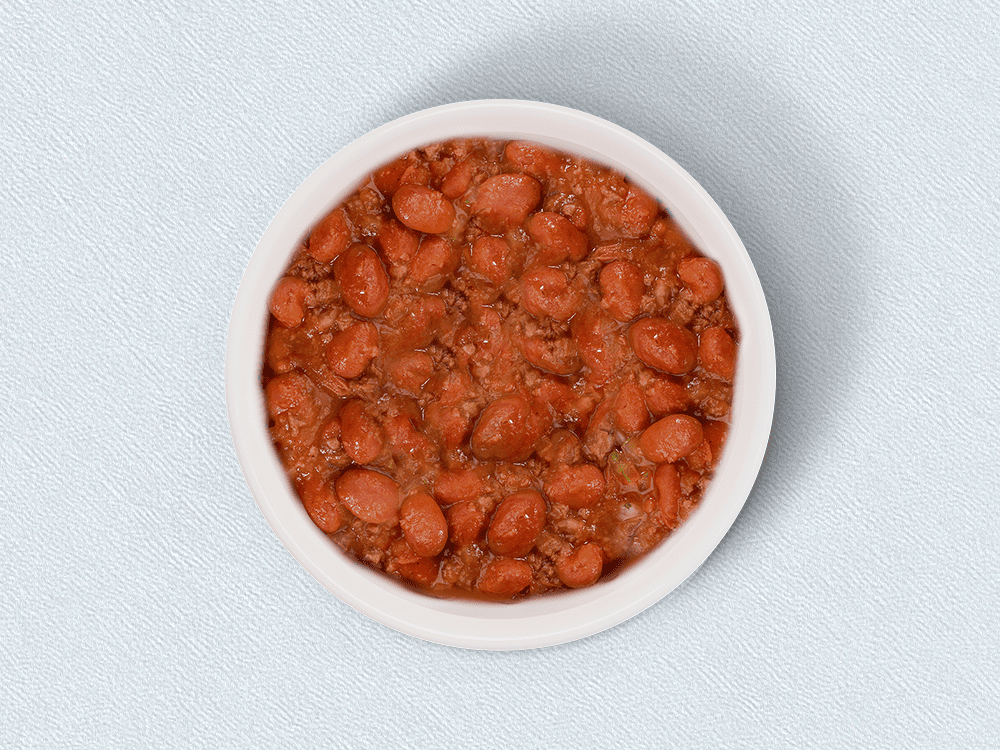Carne molida con hogao, frijol negro, chicharroncitos, tomate en cubos y pepino. Acompañado de maduro y arroz blanco. Elige la bebida y el postre