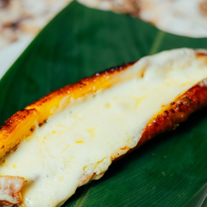 ¼ Pollo al carbón, acompañada de papa vapor, arepa y maduro.
