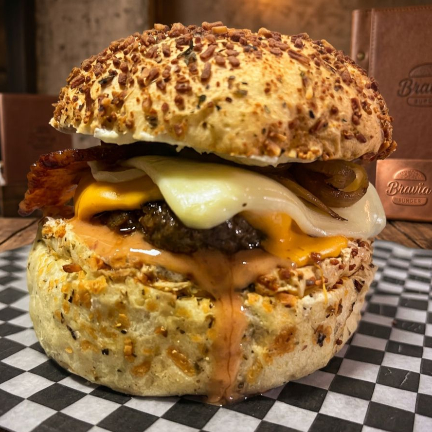 Doble carne, doble satisfacción. Carne de res jugosa, queso mozzarella, vegetales frescos y nuestra mayocilantro especial en pan artesanal orégano parmesano. No es solo una hamburguesa clásica. Es la Classic Doble de Bravïa.