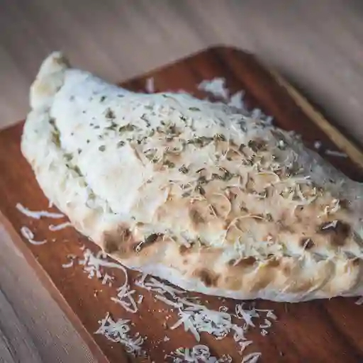 Calzone base napolitana, mozzarella, jamón, pepperoni, tocineta y cabano.